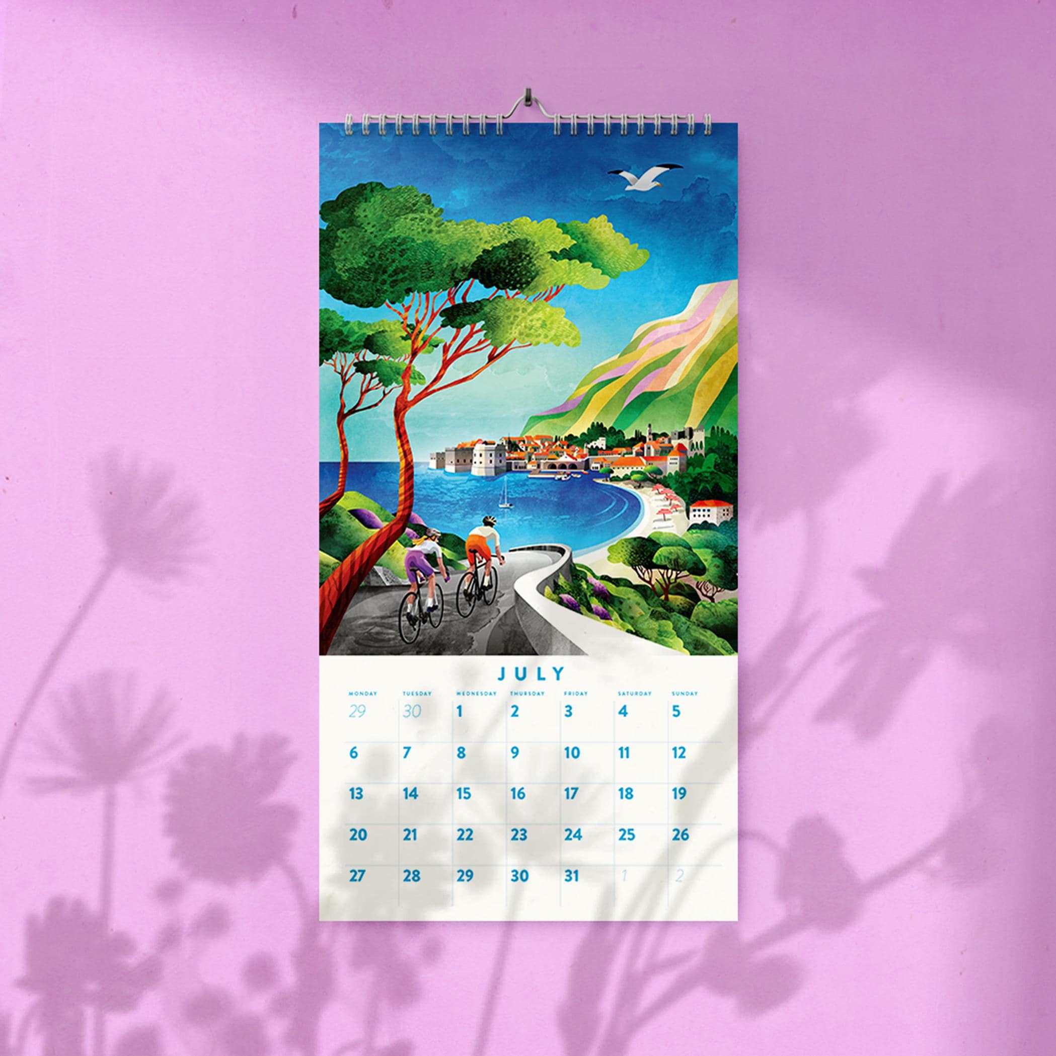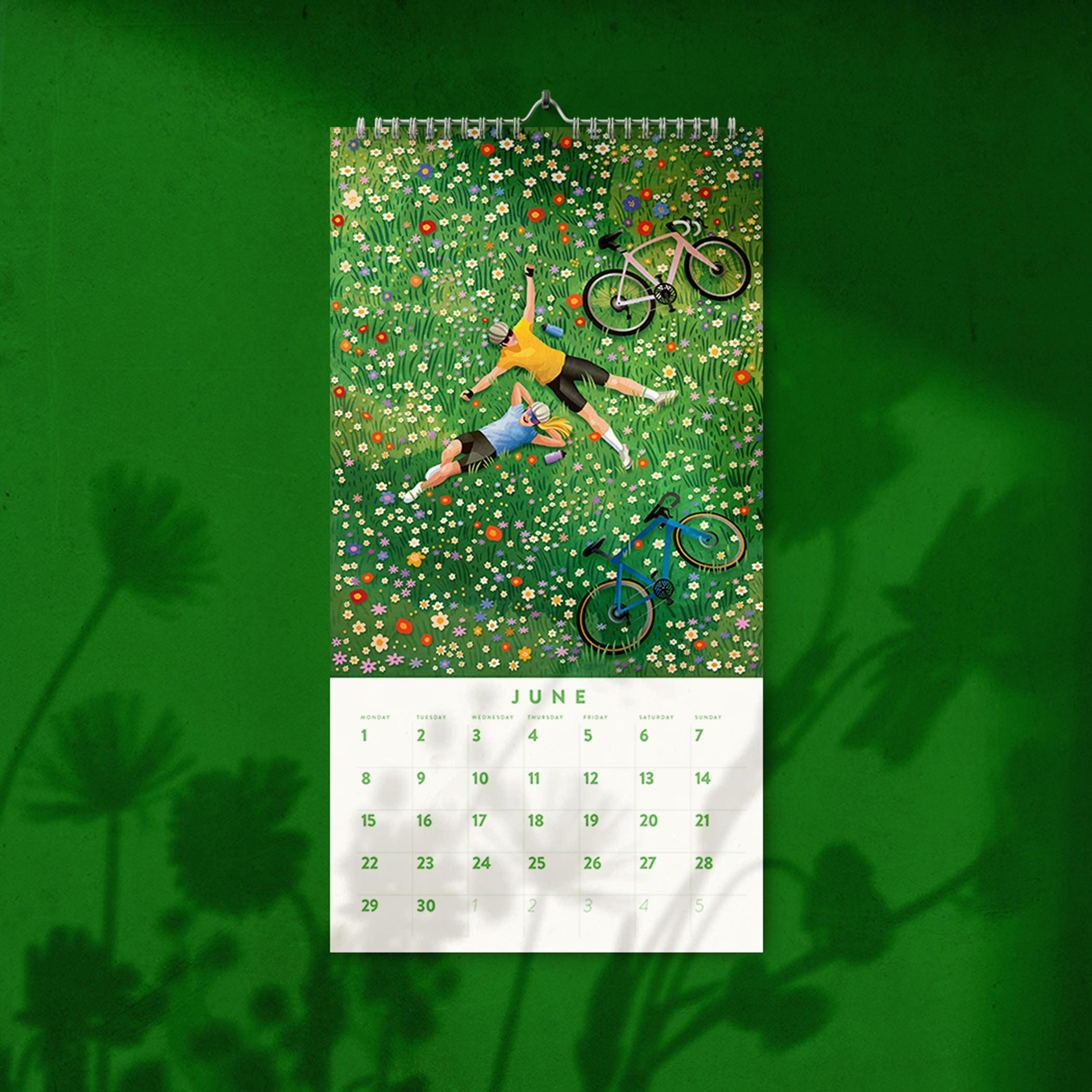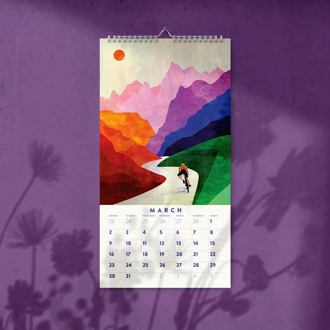 Cycling 2026 Wall calendar. 12-month calendar. It is a perfect motivation for any kind of cyclist. All illustrations are original artworks by Mojca Dolinar. All of them were made this summer with great attention to detail and color harmony and with much love for cycling.
