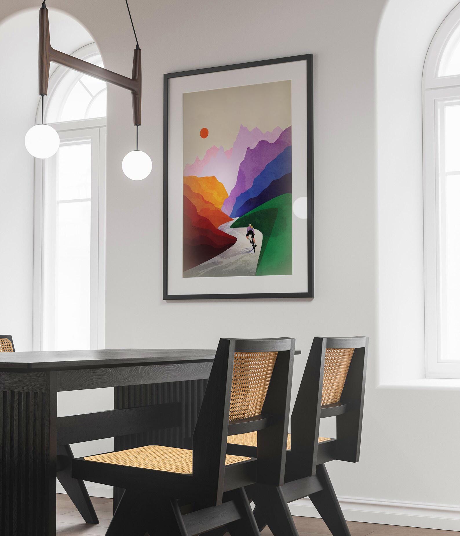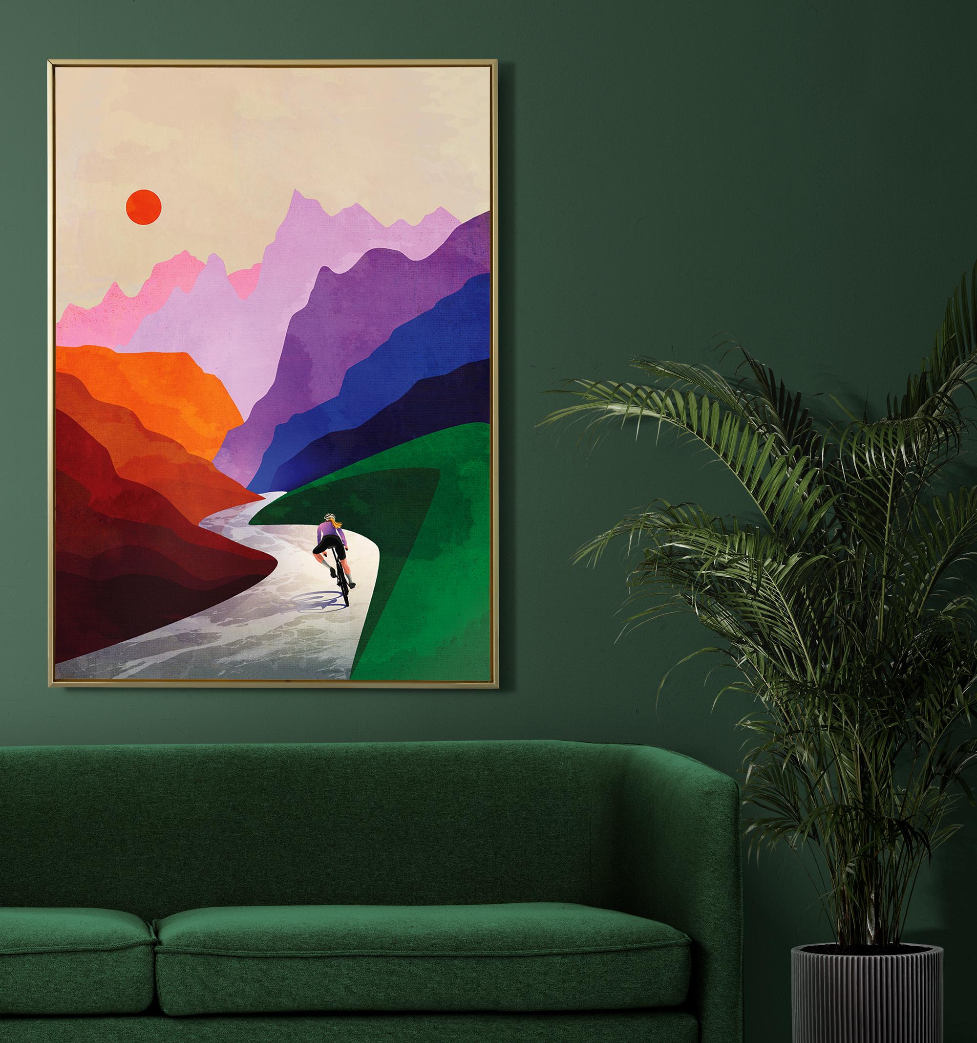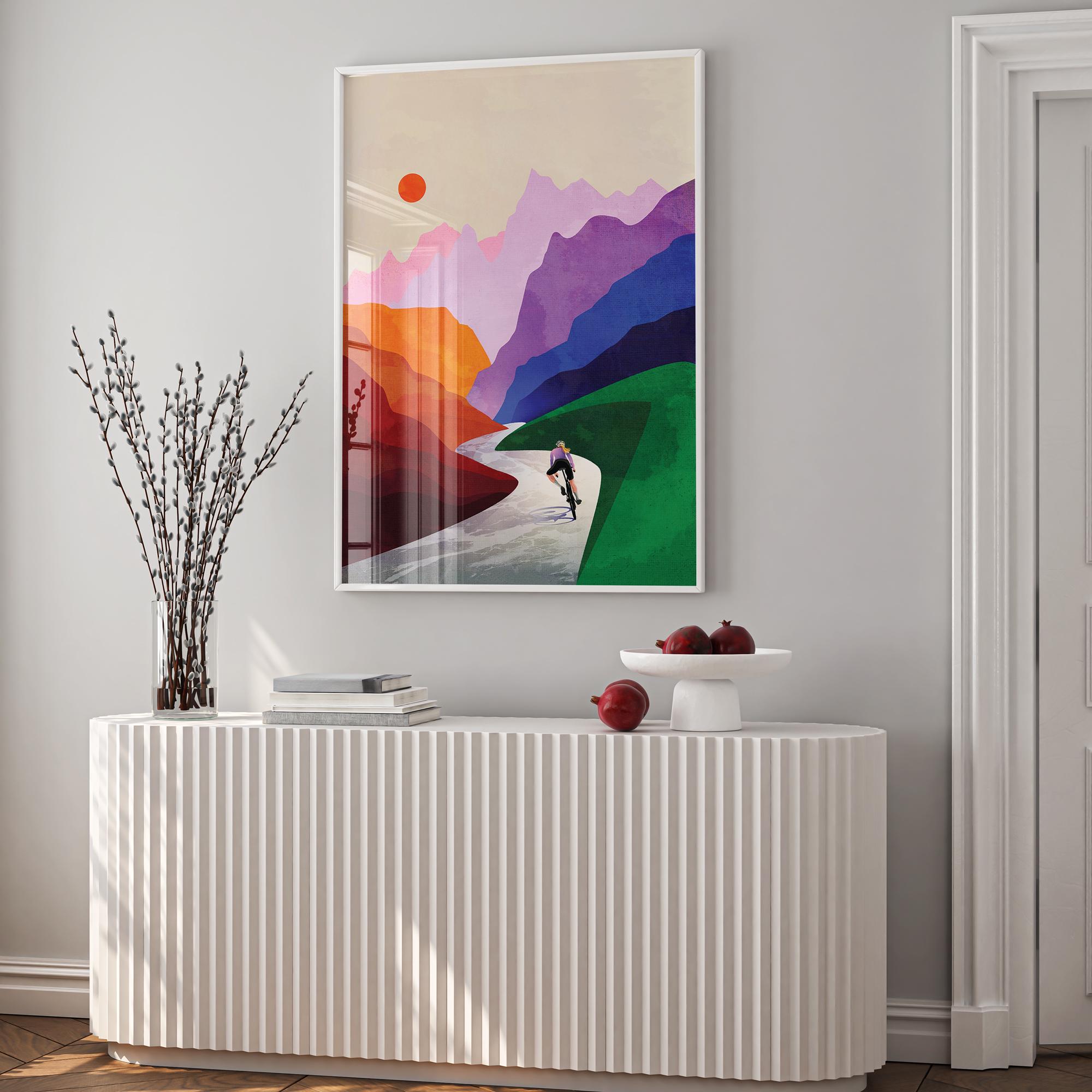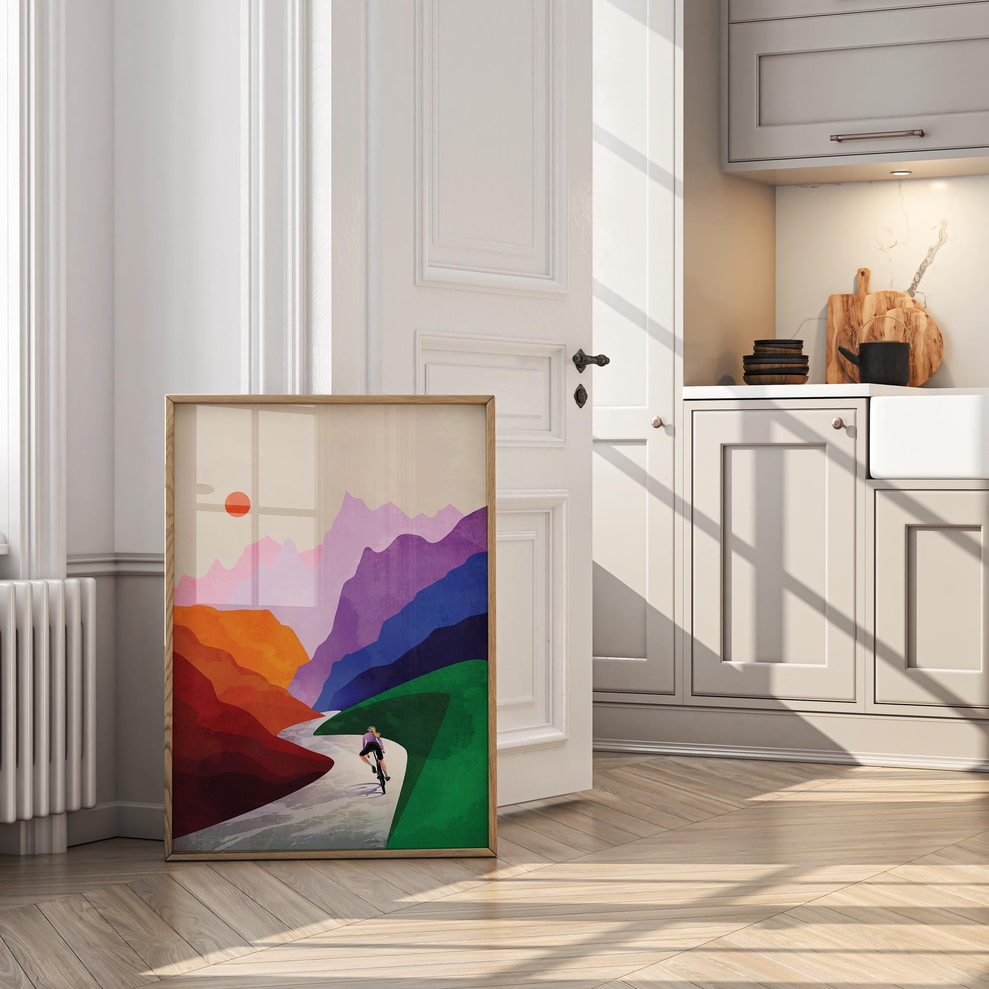 Fine art print of a woman descending down the mountain. Great gift for cyclists and a perfect motivational poster.