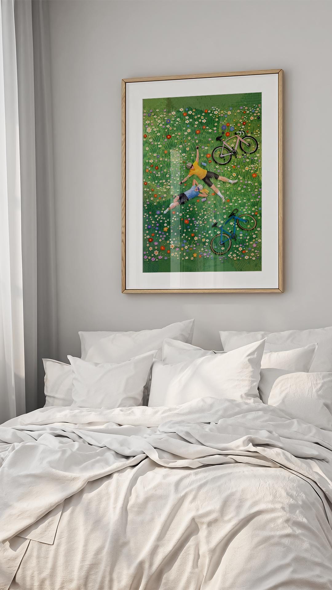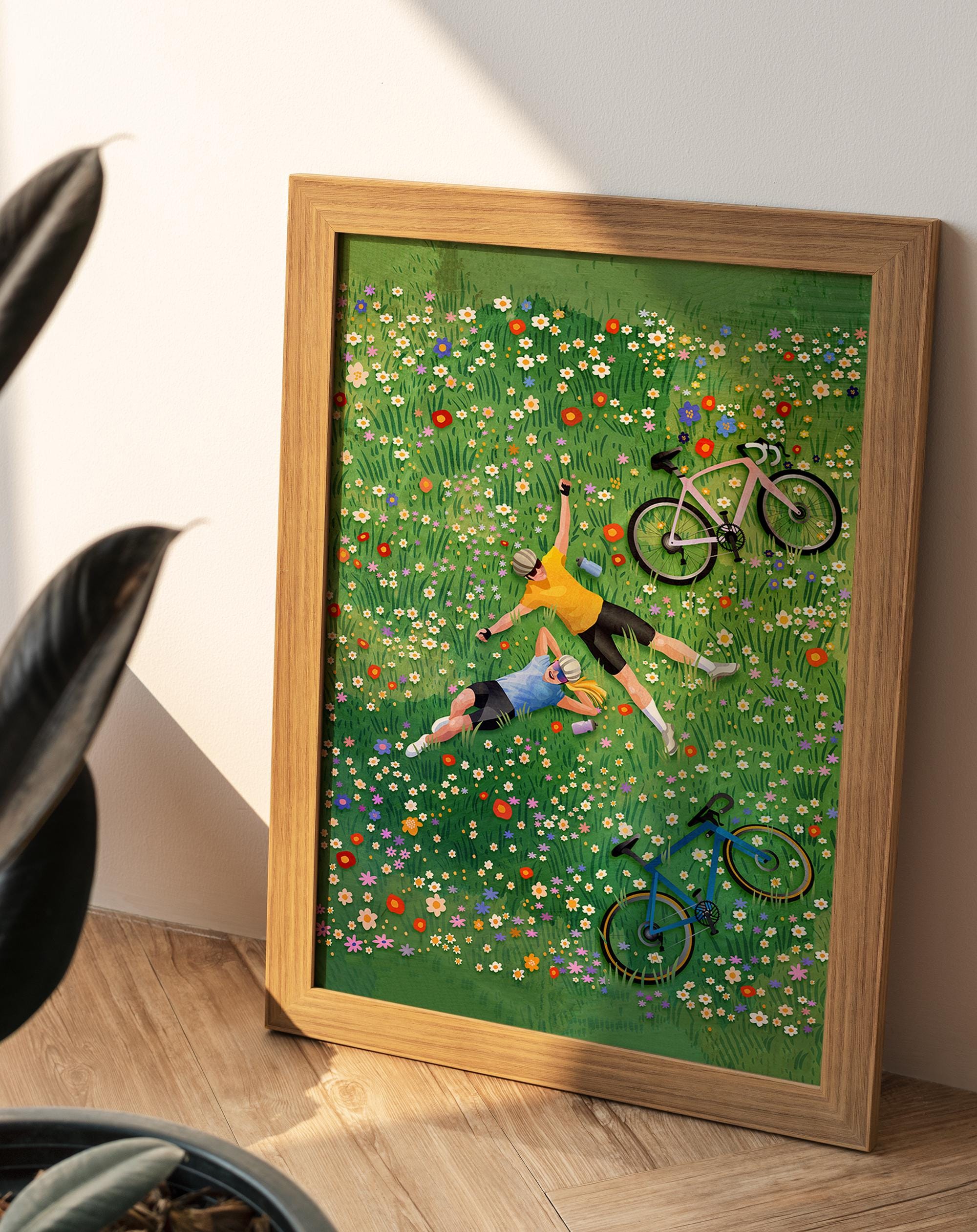 Cycling print. Sweet memories on summer ride with your favourite person. Great gift for cyclists.