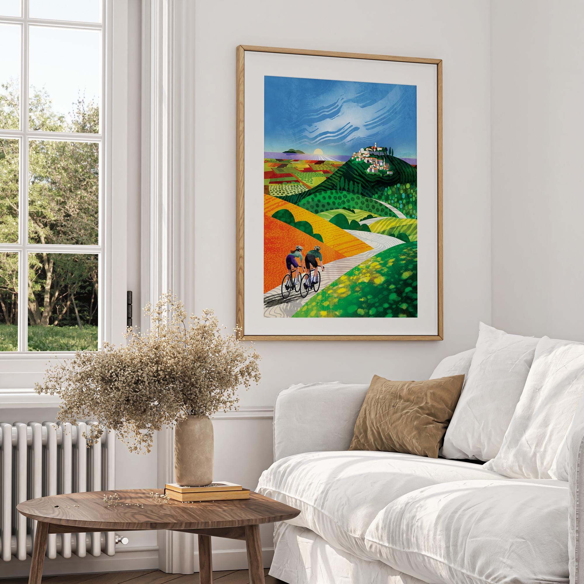 Cycling print. Cycling over hills. Great gift for cyclists.